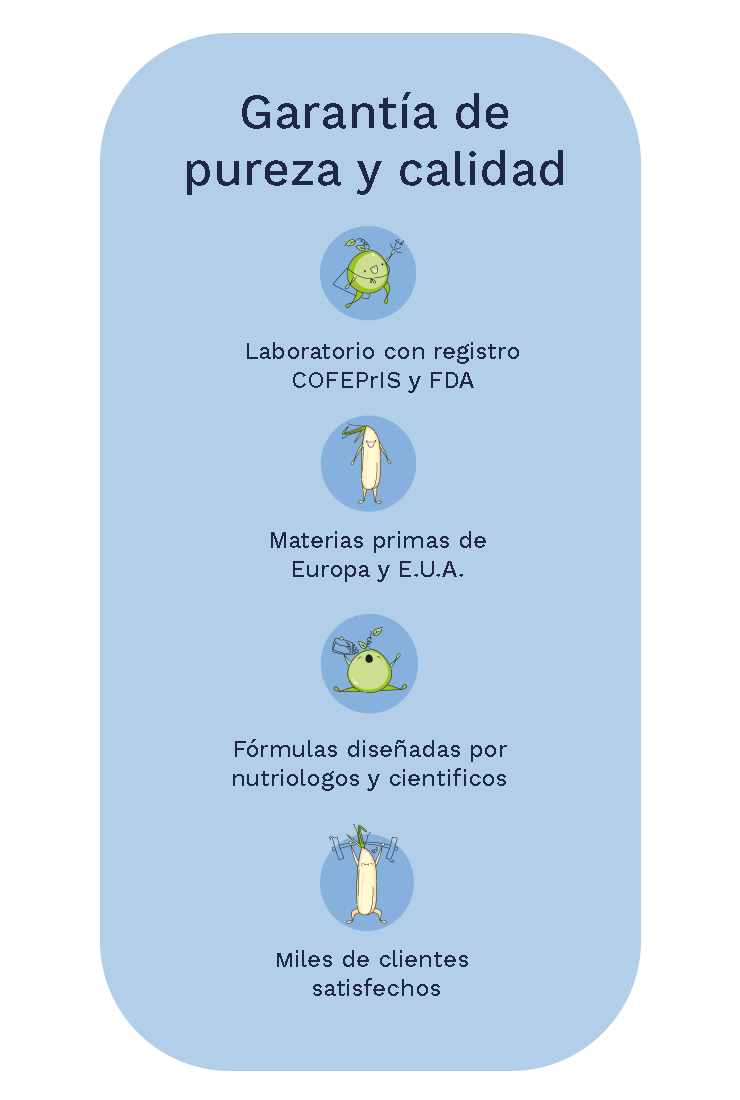 - Libre de alérgenos como la soya, el gluten y lácteos y agregamos probióticos para proteger tu flora intestinal.